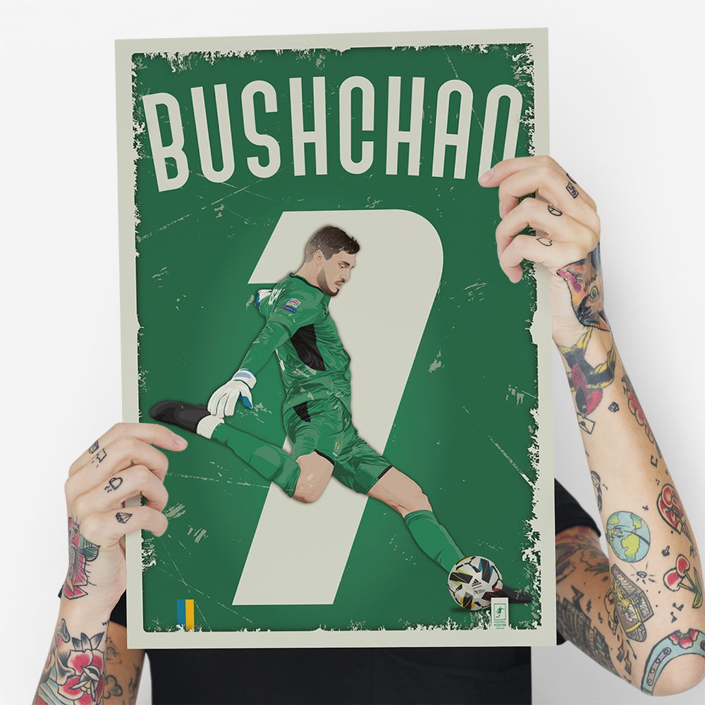 Постер створений на основі фото Георгія Бущана в формі збірної України.
