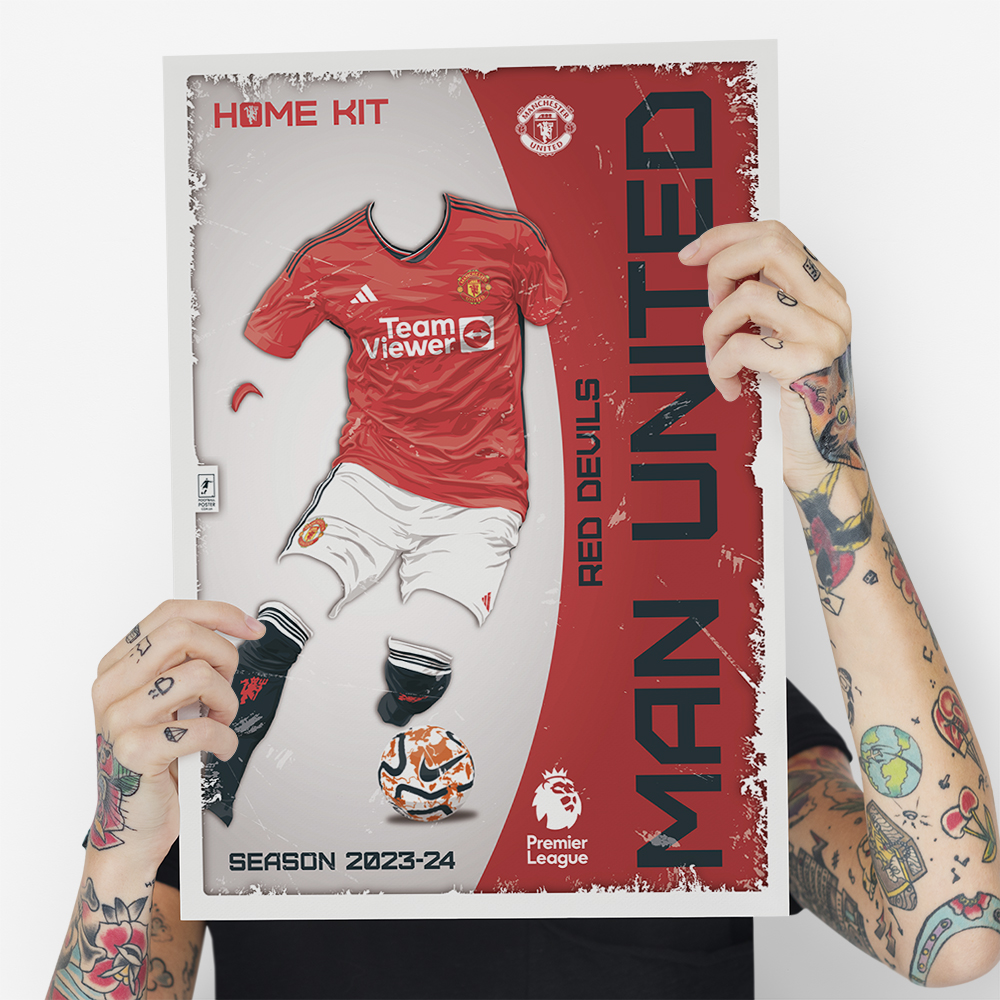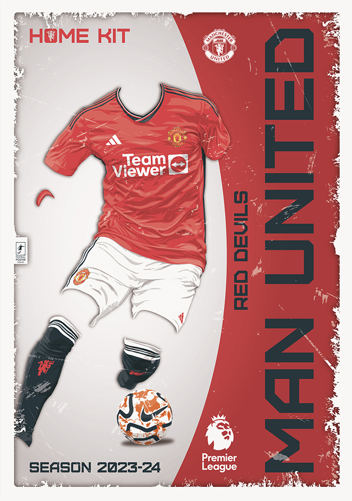 Постер створений на основі домашньої форми Манчестер Юнайтед сезону 2023-24.