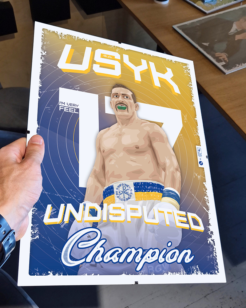 Для замовлення доступні 3 різні розміри постера Олександр Усик, що дає можливість грамотно вписати плакат в будь-який інтер’єр.