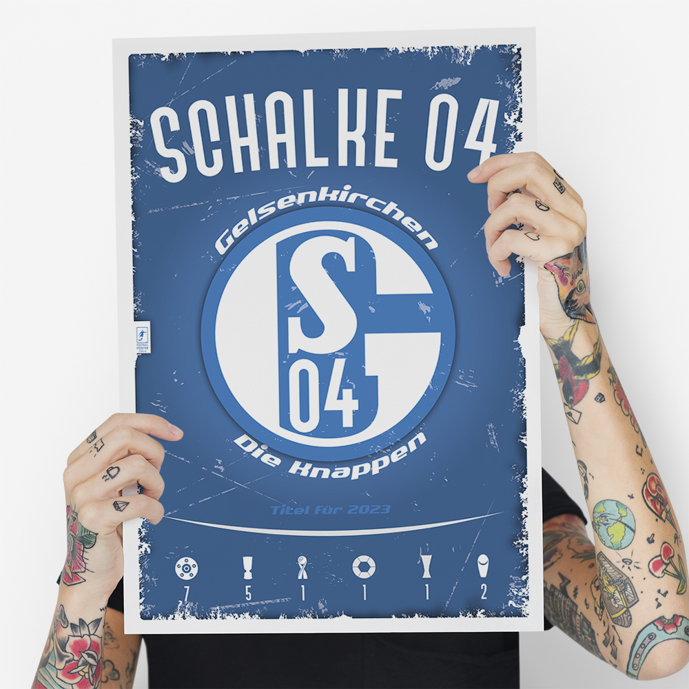 Постер створений на основі емблеми Шальке 04 з усіма її завойованими титулами станом на 2023 рік.